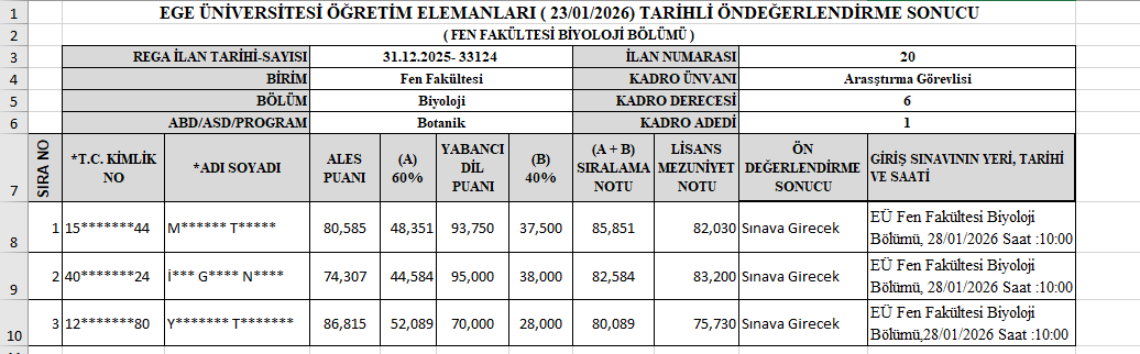 ÖĞRETİM ELEMANI ÖNDEĞERLENDİRME SONUCU