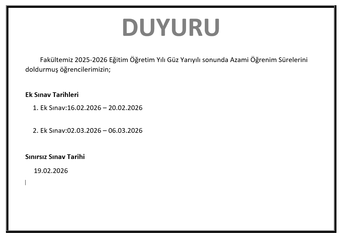 AZAMİ ÖĞRENİM SÜRESİ DOLAN ÖĞRENCİLERİN DİKKATİNE